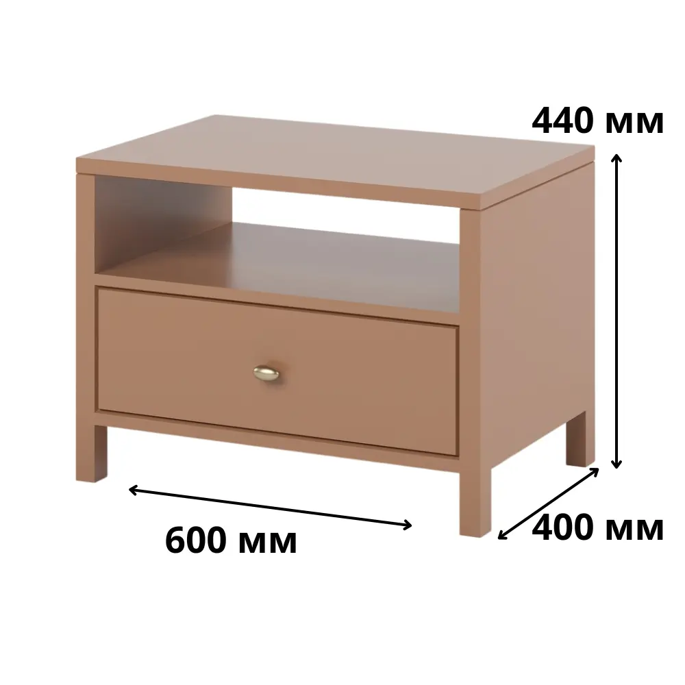 Розміри тумби 60х44х40 см роблять її компактною, але водночас достатньо місткою для зберігання всіх необхідних речей, від книг і гаджетів до косметики та інших дрібниць. Елегантний дизайн в стилі сучасного мінімалізму дозволяє легко поєднувати цю тумбу з різними стилями меблів, додаючи вашій спальні нотки затишку та шарму.