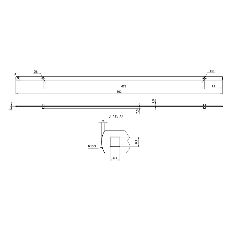 Плоская тяга для замка RZ 055-1-86 предназначена для использования в щитовых и промышленных замковых системах с многоточечным запиранием. Она служит линейным элементом передачи усилия от замка к ригелям и вспомогательным запорным узлам. Цинковое покрытие обеспечивает базовую защиту от коррозии и стабильность формы при длительной эксплуатации.