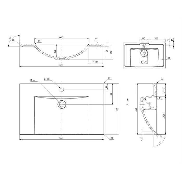 умивальник Omnires Naxos 46x76 white (NAXOS760BP)