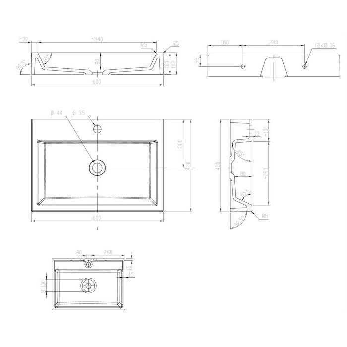 умивальник Omnires Thasos 42x60 white (THASOS600BP)