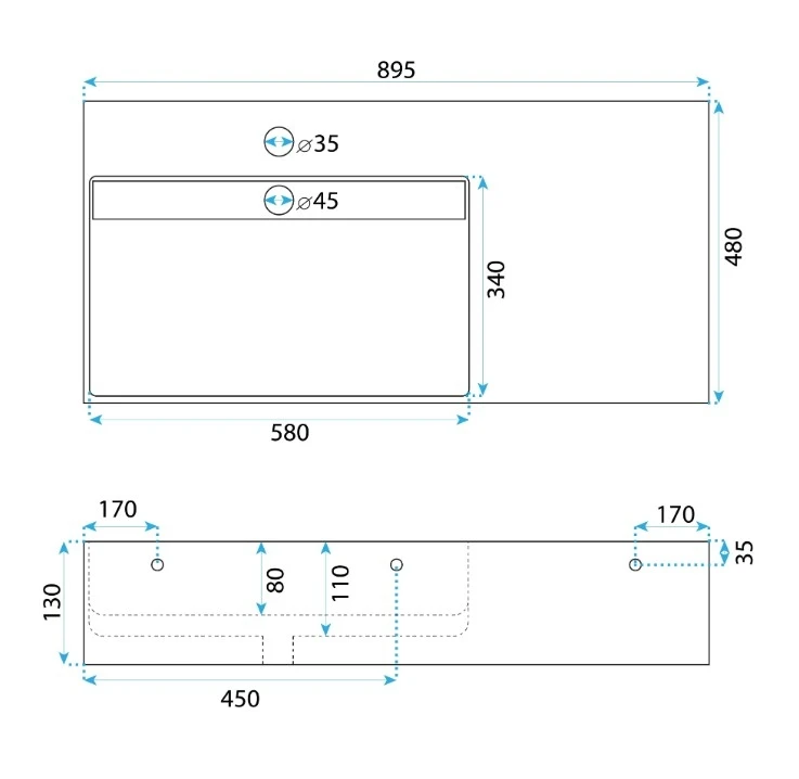 умивальник Rea Archi 89,5x48 grey matt (REA-U4304)