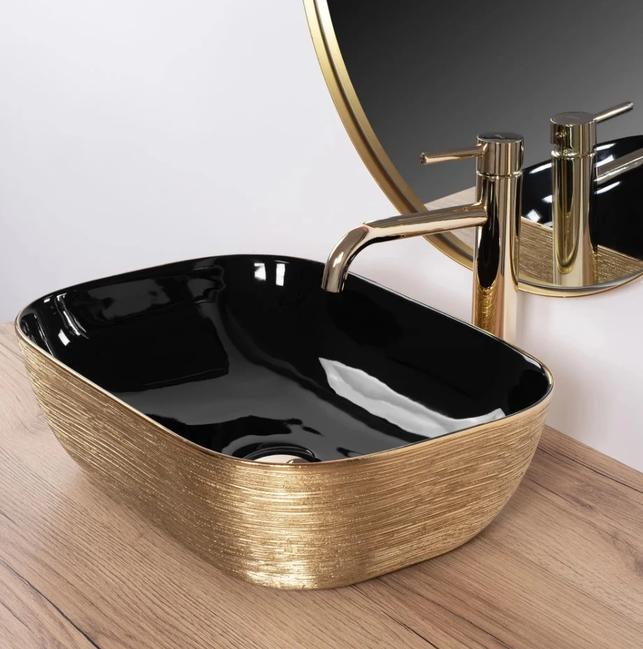 умивальник Rea Belinda 33x46,5 black/gold brush (REA-U8780)