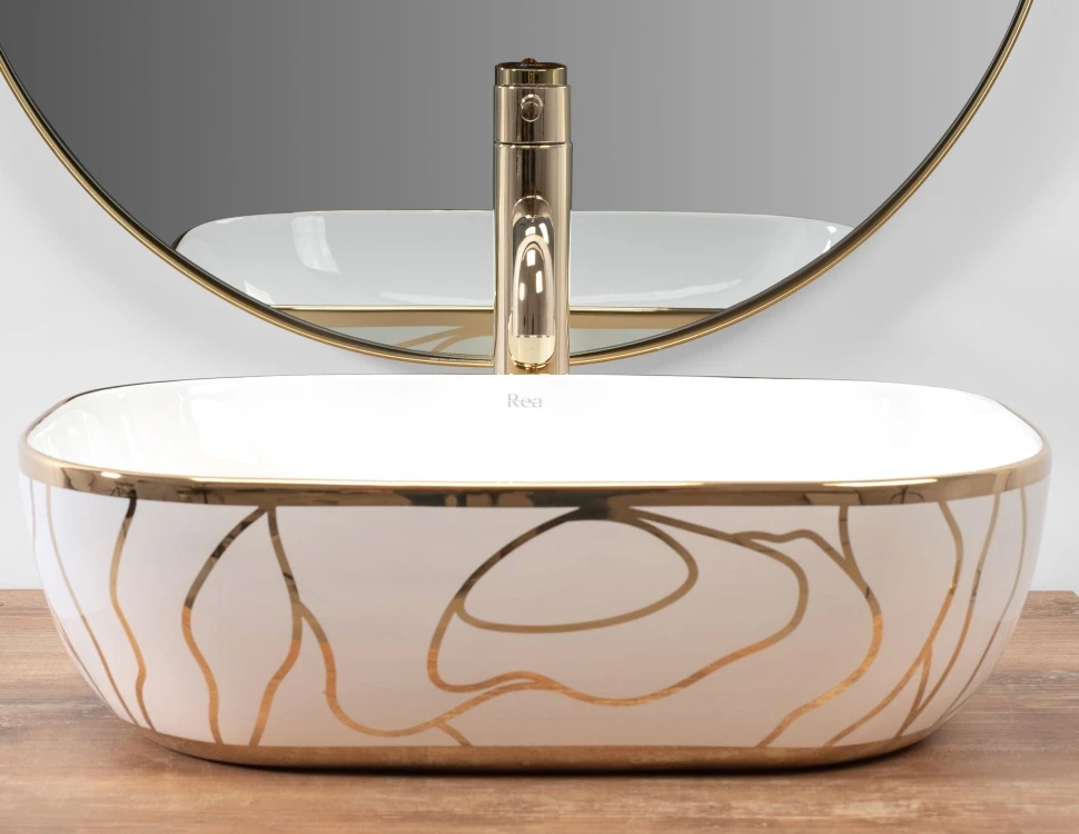 умивальник Rea Belinda Wave 46,5x33 white /gold (REA-U8472)