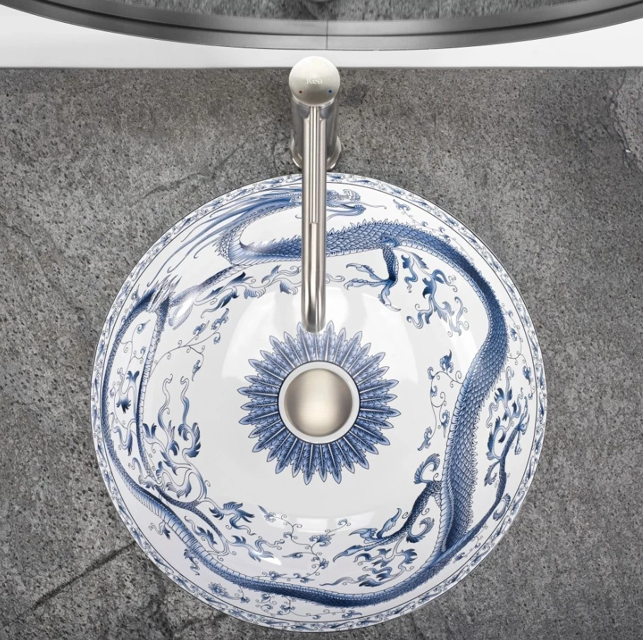 умивальник Rea Kioto 40x40 білий-синій (REA-U6032)