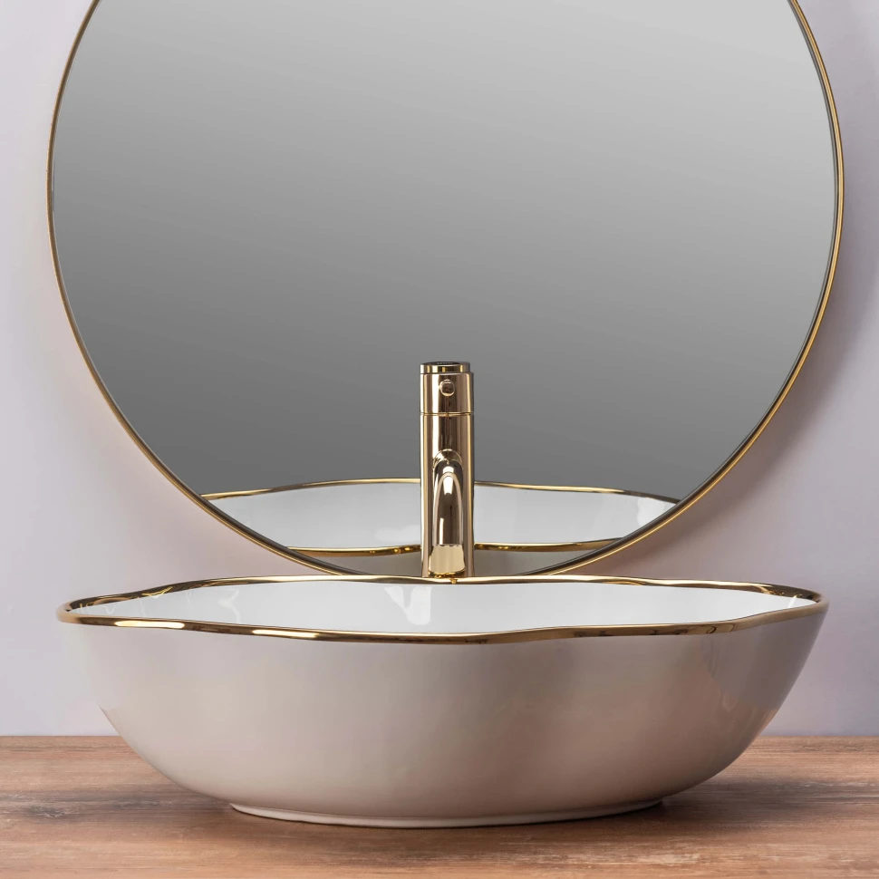 умивальник Rea Pearl 51,5x37,5 gold edge (REA-U0696)