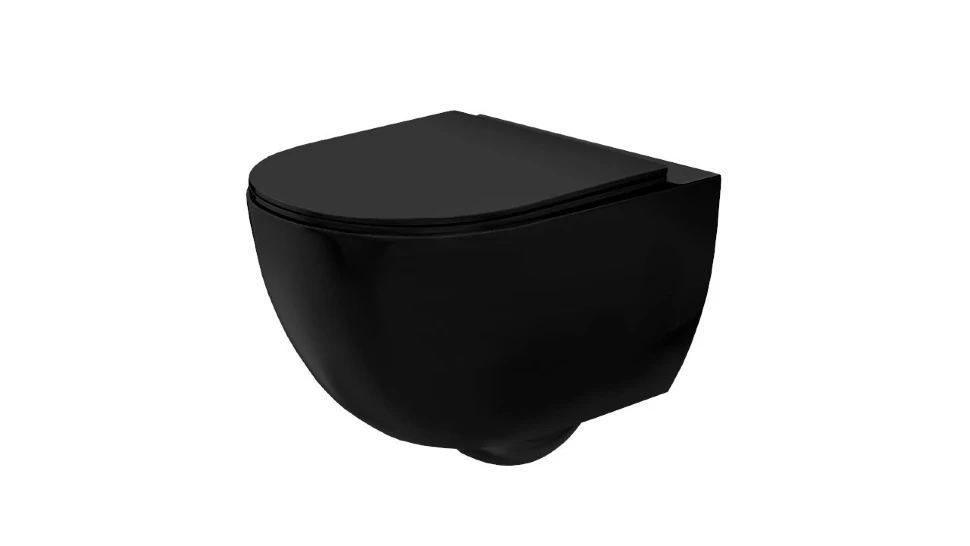 унітаз Carlo Mini Rimless 48x37 black mat + сидіння дюропластів soft-close (REA-C8489)