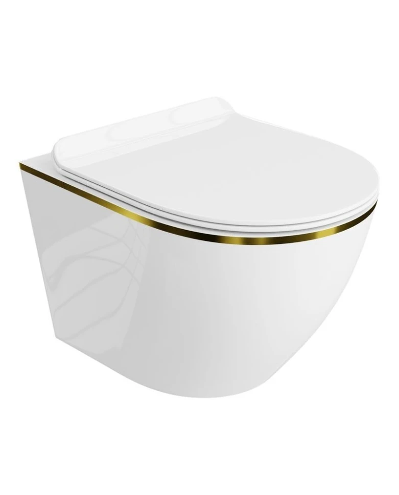 унітаз Lavita Sofi підвісний, сидіння дюропласт, без обідка, білий-золотий (5900378319054)