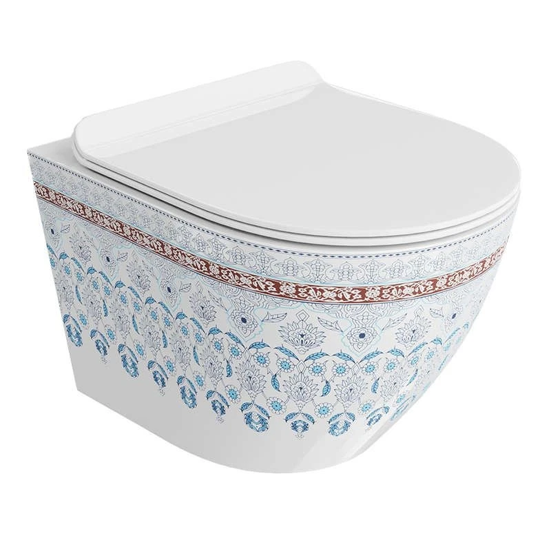 унітаз Lavita Sofi Slim Folklor підвісний, з сидінням, білий з візерунком (5900378335412)