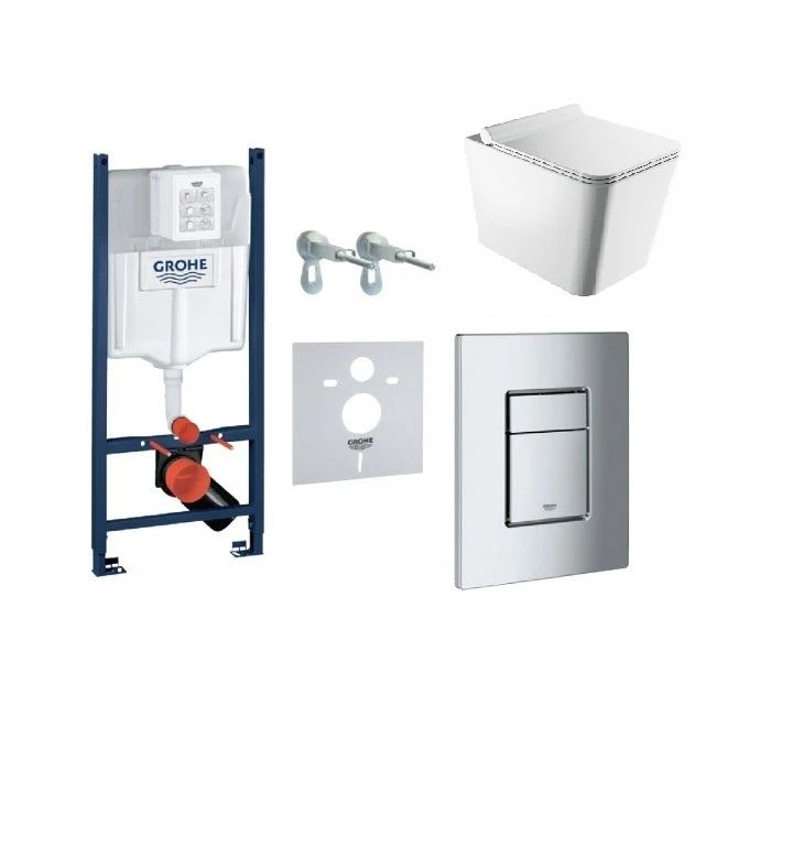 унітаз Omnires Boston 53x36 rimless підвісний, сидіння дюропласт + інсталяція Grohe Rapid Sl (387320