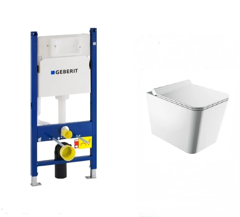 унітаз Omnires Boston 53x36 Rimless підвісний, сидіння дюропласт+інсталяція Geberit Duofix (458.126.