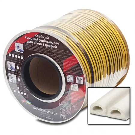 Ущільнювач на основі клею перетином D 9*6 мм. У бухтах 100 м. Колір білий. Клеючий шар містить армувальну сіточку, яка перешкоджає розтягуванню. Призначений для ущільнення зазорів та щілин шириною 4-5 мм. Матеріал: пористий синтетичний каучук; Кількість в упаковці: 100 м; Температурний режим: від -30 до +65 * С; Кольори: білий, сірий, коричневий, чорний. Доставка по всій Україні. Продаж оптом.