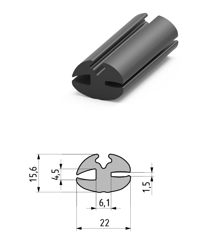 Промисловий ущільнювач для скла Mesan № 340.09.380 (тип Н-профіль) призначений для встановлення вікон у металеві корпуси обладнання, кабіни спецтехніки та електротехнічні шафи. Дана модель розрахована на скло товщиною 4–5 мм та металеву рамку (стінку) товщиною 1–2 мм. Виготовлений з високоякісного каучуку EPDM, що гарантує стійкість до ультрафіолету, озону та перепадів температур. Для забезпечення повної герметичності та надійної фіксації рекомендується використовувати разом із замикаючим шнуром-замком 340.09.383.