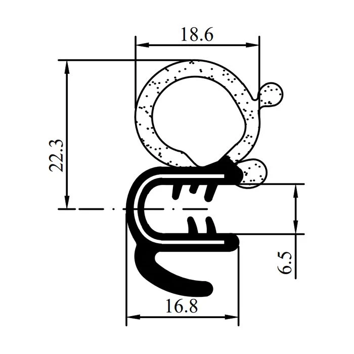 Накладной уплотнитель резиновый армированный RZ используется для герметизации краев металлических корпусов.