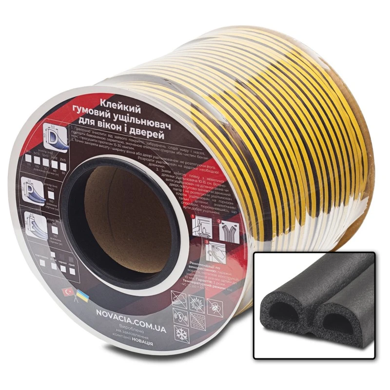 Ущільнювач самоклеючий чорний D (Розмір: D14*12, Довжина: 40м)