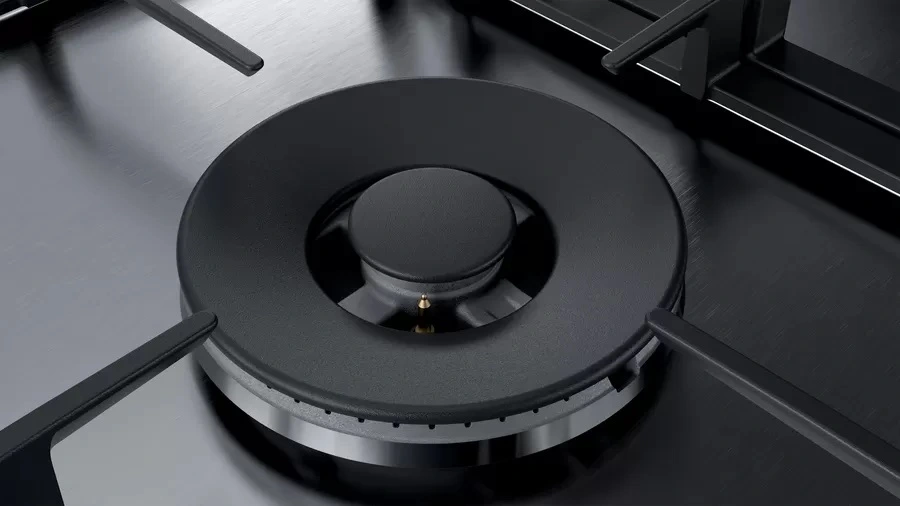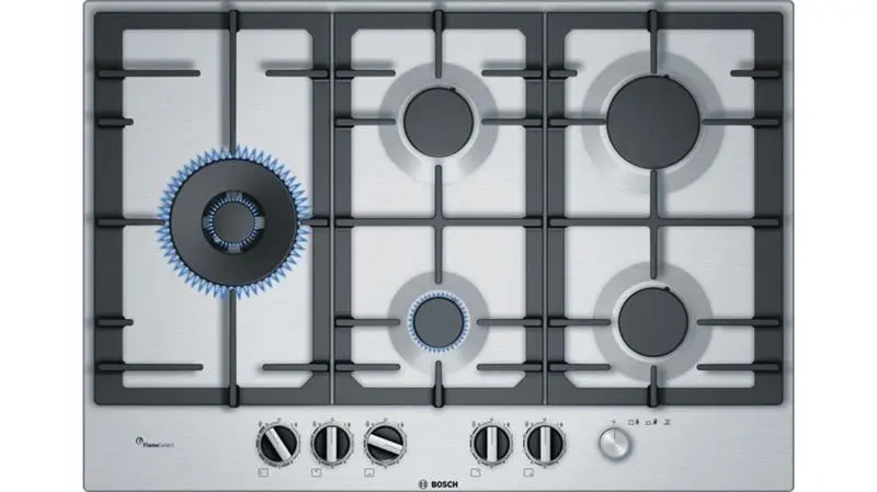 Варильна поверхня газова Bosch PCS7A5M90 -75см/5 кн/чавун/WOK/нерж. Газова варильна поверхня з нержавіючої сталі з технологією FlameSelect: ідеальні кулінарні результати завдяки дев'яти точним сходинкам потужності полум'я. Обладнана дев'ятьма точно визначеними рівнями потужності, FlameSelect дозволяє легко регулювати рівень вогню саме так, як це потрібно Вам. Від рівня 1 – для кип'ятіння на повільному вогні, до рівня 9 – для активного кипіння. Ідеальний результат простим рухом руки. Конфорки: 1 потужна, 2 стандартні, 1 економічна, 1 Wok.