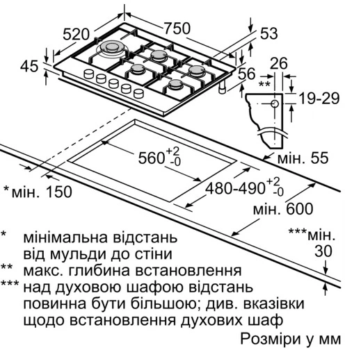 Варильна поверхня Bosch газова, 75см, чавун, нерж