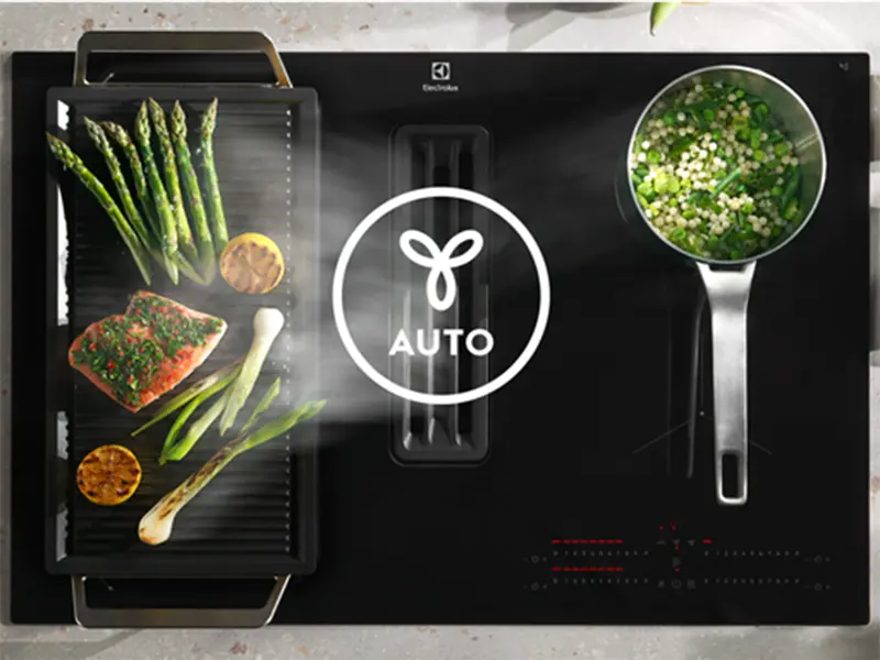 Серія 600 Bridge - це варіальна поверхня з потужною вбудованою витяжкою, яка відкриває нові можливості в плануванні інтер'єру кухні. Функція Bridge дає змогу об'єднати 2 зони нагрівання в одну велику, наприклад для приготування на гриль-планчі.