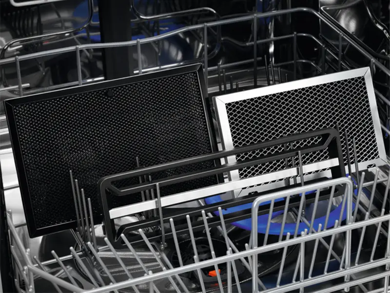Вугільний і жировий фільтри забезпечують свіжість повітря в кухнях. Знімний фільтр можна легко змішувати в посудомийній машині й регенерувати в духовому шафі для підвищення терміну служби.