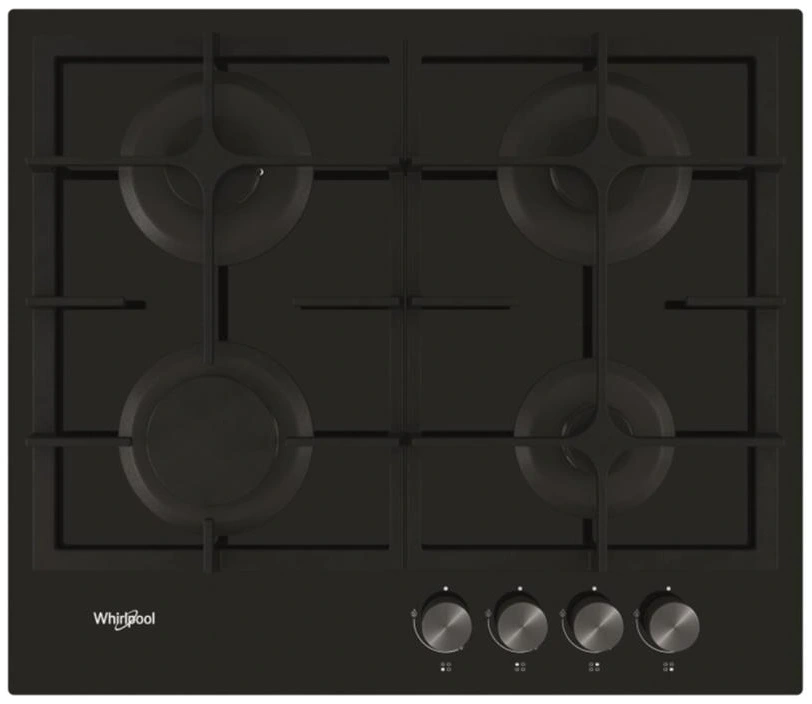 Варильна поверхня Whirlpool газова на склі, 60см, чавун, турбо-конфорка, чорний
