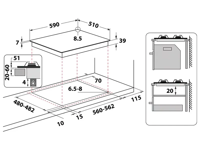 Система контролю газу відключає подачу газу до конфорки, якщо півм’я випадково згасне (через раптовий протяг, перебої в подачі газу, вітрікування рідини тощо)