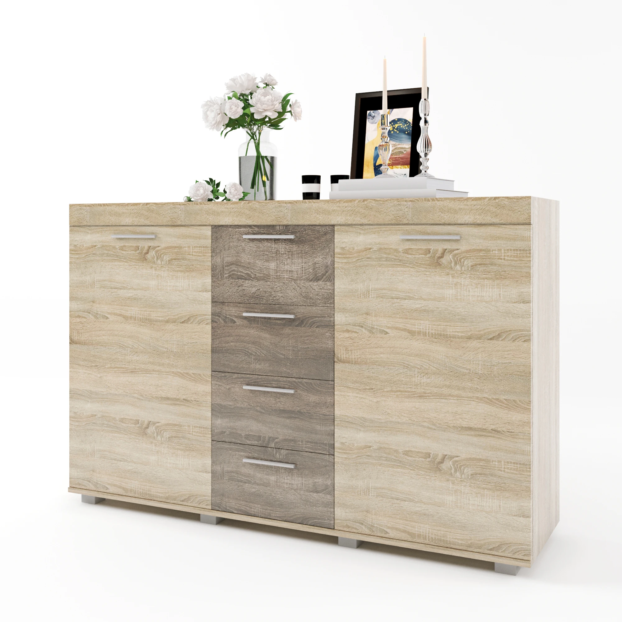 Великий комод Еверест К-7 Британія 140х38х92 сонома + трюфель (роликові) (DTM-2009)
