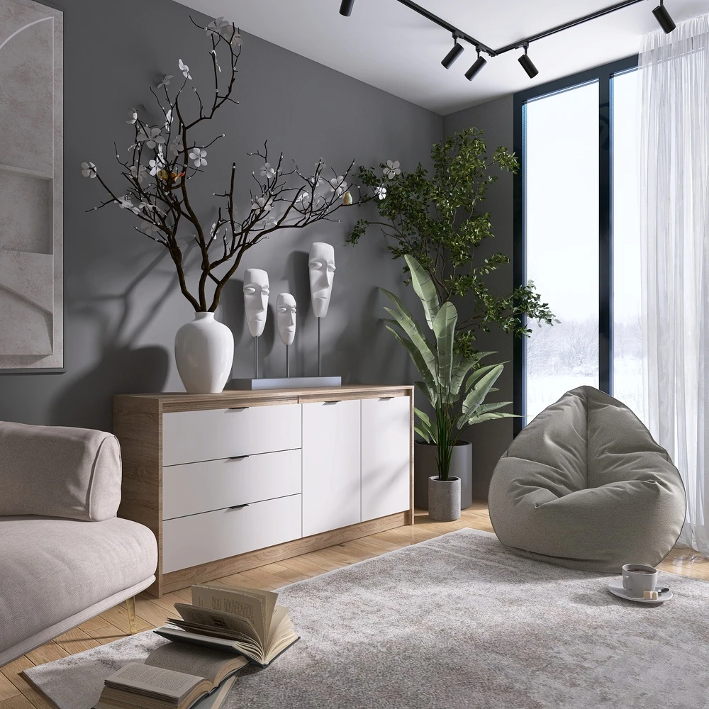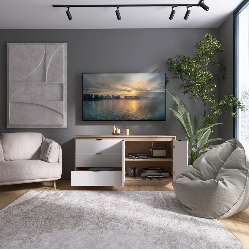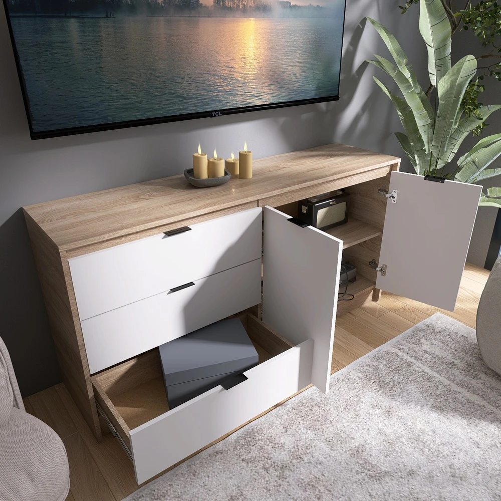 Великий комод із дверима та 3-ма шухлядами Еверест Сіті-1500 150,2х38х74,6 Дуб сонома/Білий (DTM-071
