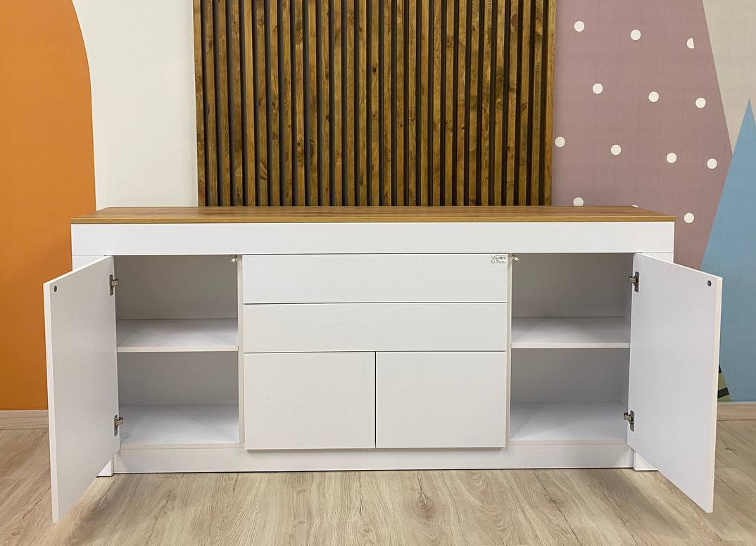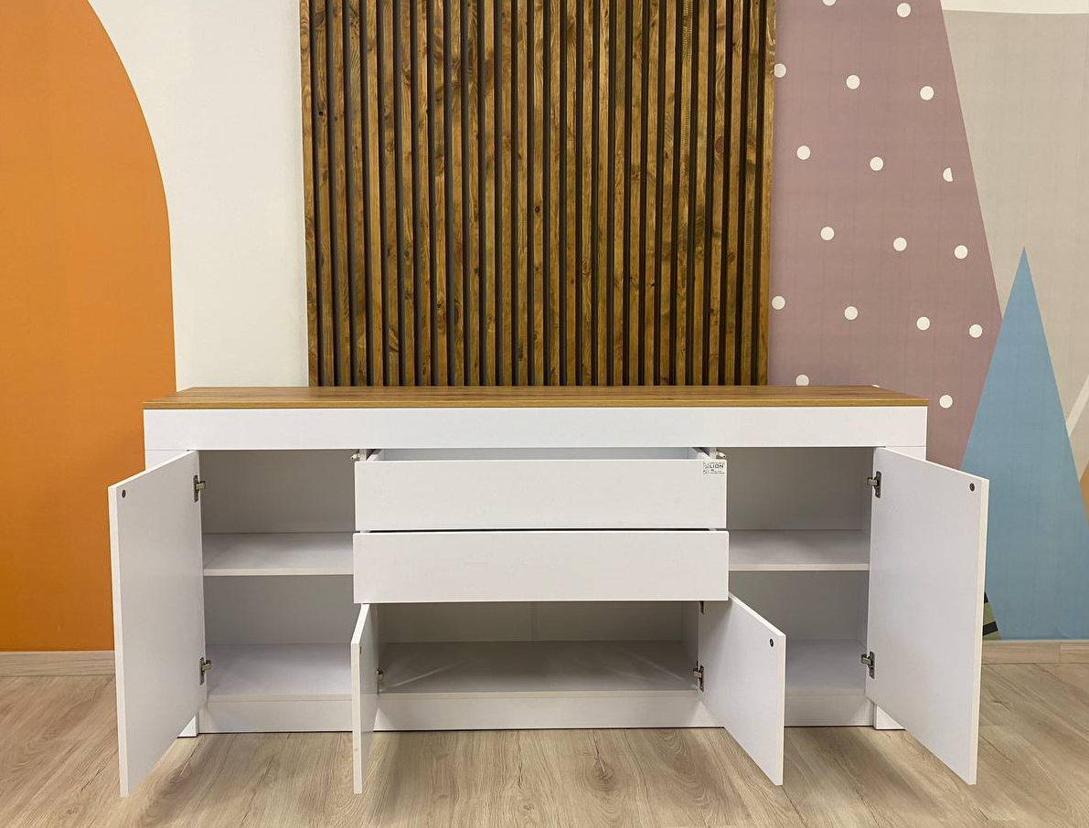 Изготовленный из высококачественного ламинированного ДСП от производителя Swiss Krono, этот комод обеспечивает надежность и долговечность. Благодаря продуманной конструкции с двумя выдвижными ящиками и открытыми отделениями, он предлагает достаточно места для хранения различных вещей, помогая поддерживать порядок в вашем доме.
