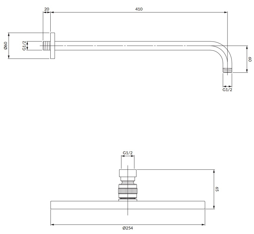 верхній душ Omnires Slimline Graphite 25x25 cm (WGSET1GR)