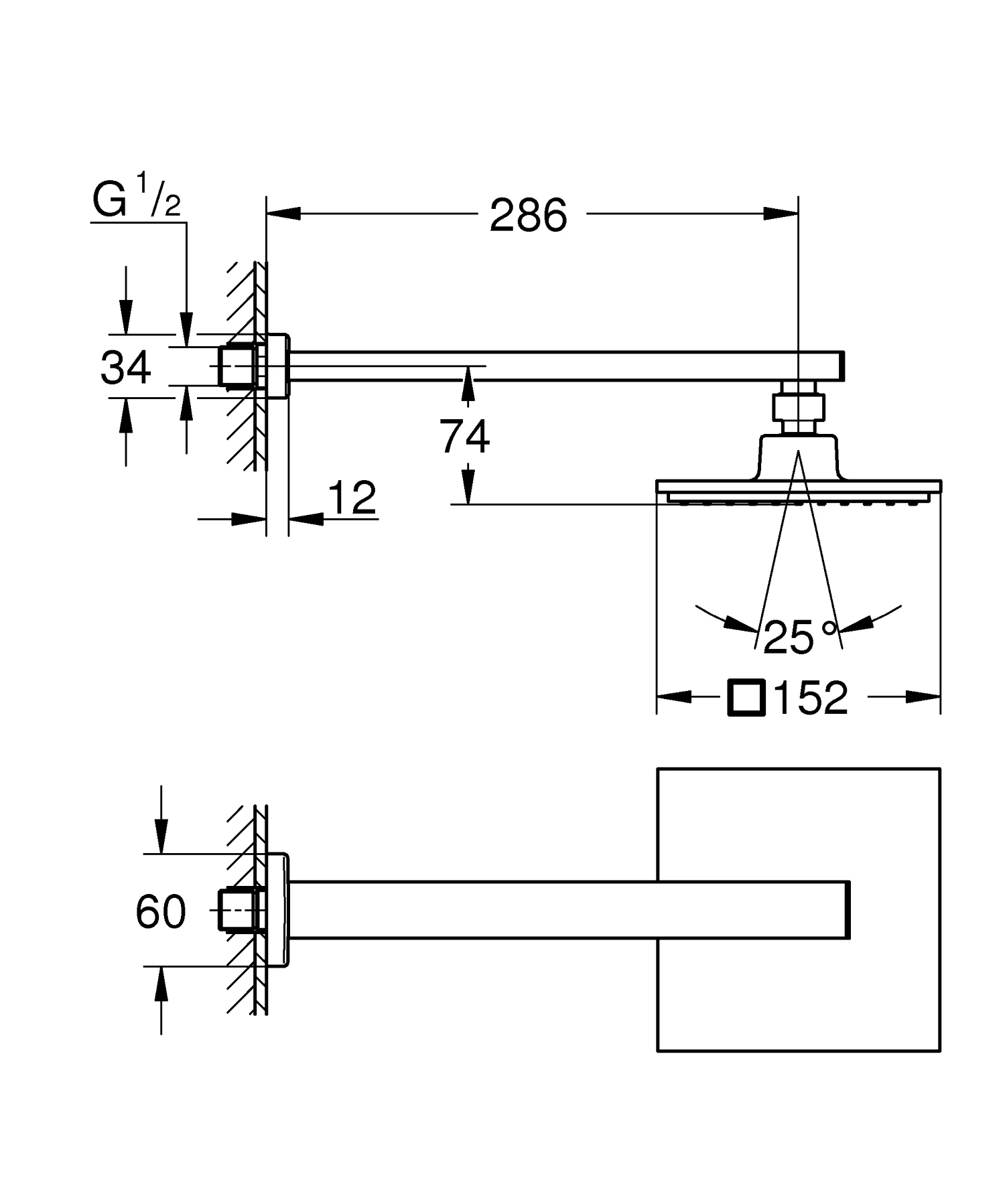 Верхній душ з настінним кронштейном Grohe Euphoria Cube (26073000)
