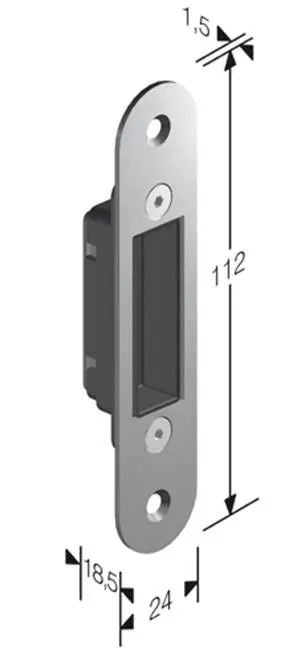 Відповідна планка магнітного замка (регулюється). Універсальна: для правих і лівих дверей. Матеріал: Лицьова планка: сталь. Прийомна кишеня з пластмаси з вбудованим магнітом. Покриття / колір: Лицьова планка: сталь хромована матова. Прийомна кишеня: темно-коричневий. Висота: 112 мм. Ширина: 24 мм. Глибина врізки: 18,5 мм.