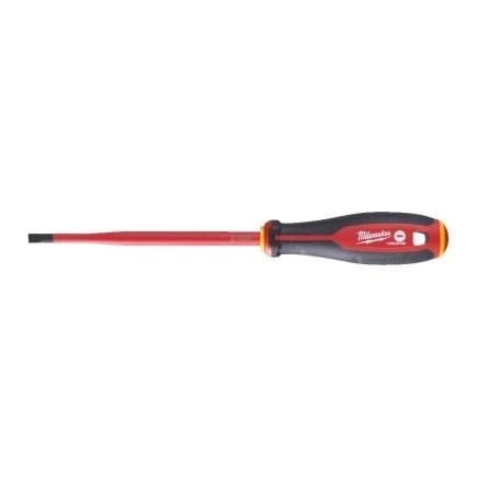 Milwaukee 4932478717 — шліцева викрутка з лезом 1,2×6,5 мм і довжиною стрижня 150 мм для загвинчування і відгвинчування кріплень із плоским шліцем середнього розміру. Двокомпонентна рукоятка з м'якою гумовою накладкою забезпечує надійний хват і знижує втому руки при тривалій роботі. Стрижень із хромованадієвої сталі стійкий до зносу і деформації при роботі з затягненим кріпленням. Інструмент Milwaukee Professional — для тих, кому потрібна надійна ручна викрутка щоденного використання.