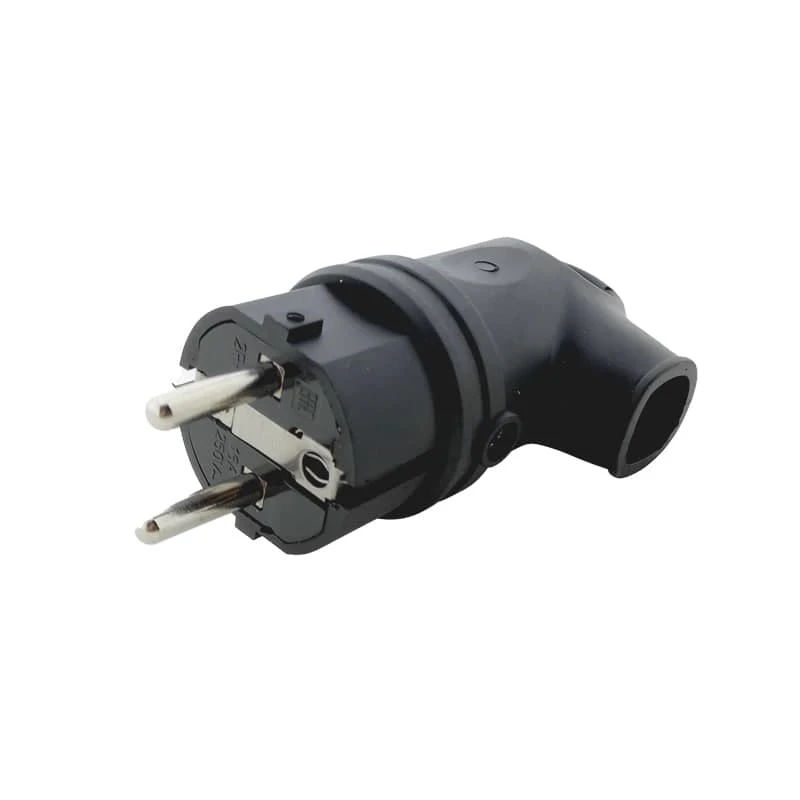 Вылка с заземлением угловая с кольцом каучук, черный EH-RB-R от ElectroSpace идеально подходит для замены сломанной вилки или создания индивидуального удлинителя с учетом специфических потребностей. Эта вилка отличается высоким качеством изготовления, надежностью и долговечностью, обеспечивая безопасное подключение электроустройств даже в сложных условиях. Ее корпус выполнен из ударопрочного и негорючего каучука, что защищает устройство от механических повреждений и выдерживает случайные падения и вибрацию, что делает ее отличным выбором для индустриальных объектов, строительных площадок, а также для помещений с повышенной влажностью.