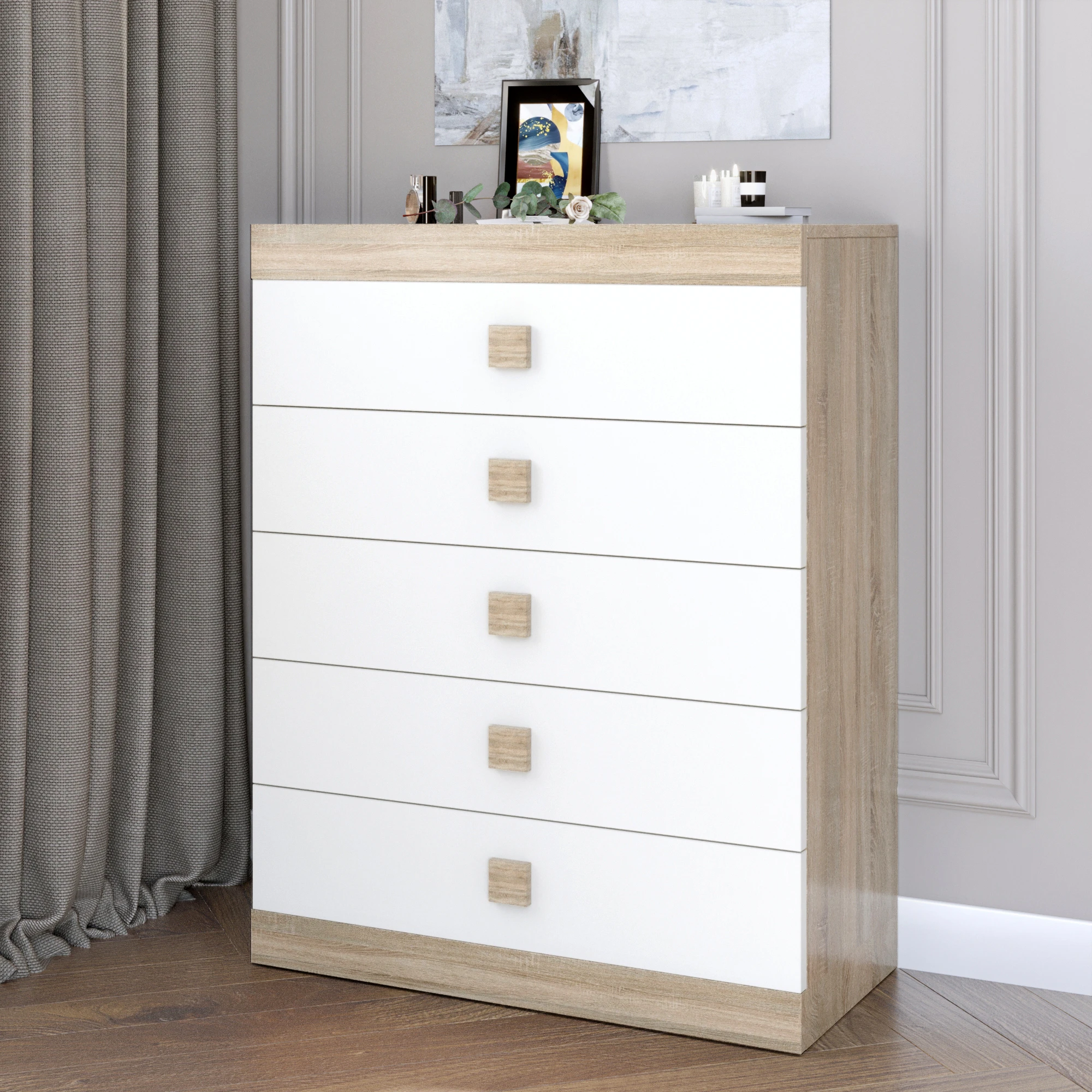 Високий комод Еверест на 5 ящиків Соната-2 80х38х101 дуб сонома + білий (DTM-2019)