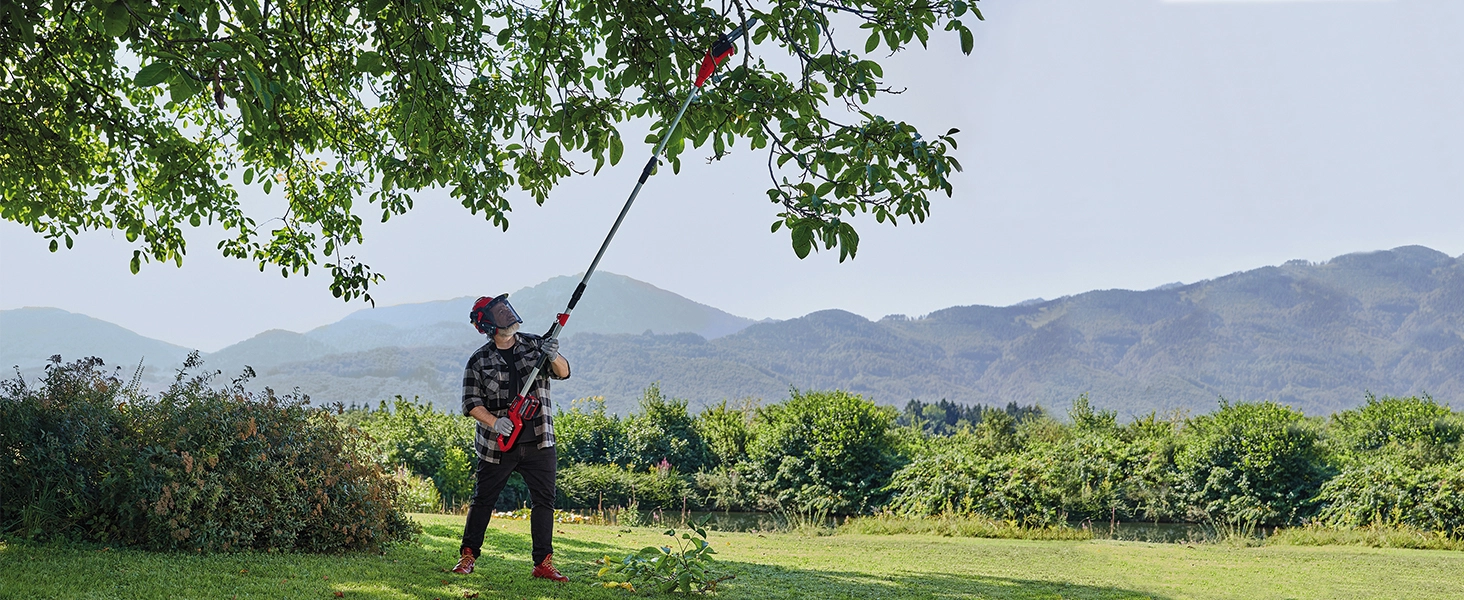 Бездротовий висоторіз Einhell GC-LC 18/20 Li T-Solo ідеально підходить для регулярного обрізання дерев та високих чагарників. Є членом сімейства Power X-Change.