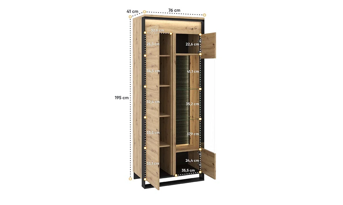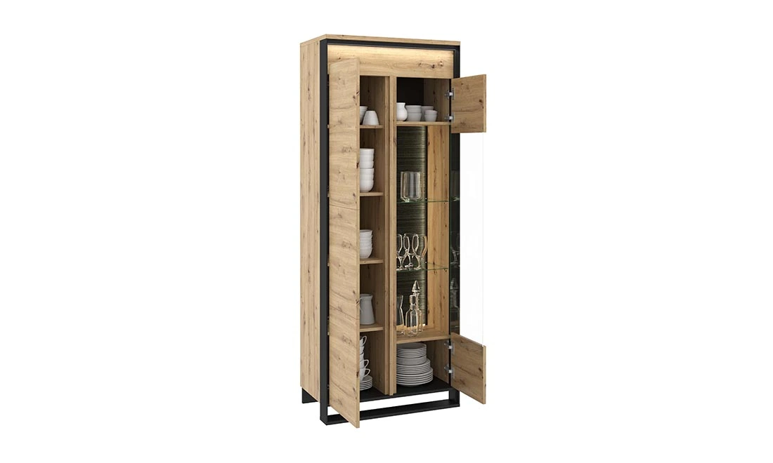 Вітрина 2-дв висока Квант дуб артизан/чорний з підсвіткою