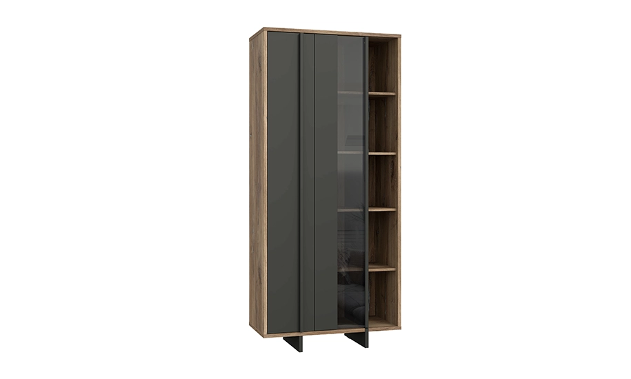Вітрина ліва Джокказ – це стильне та практичне рішення для вашого дому, яке поєднує якісні матеріали та сучасний дизайн. Корпус виконаний з міцного ЛДСП у відтінку Дуб Флагстафф, що надає натурального вигляду та затишку. Контрастний фасад чорного кольору додає вишуканості та сучасного характеру.