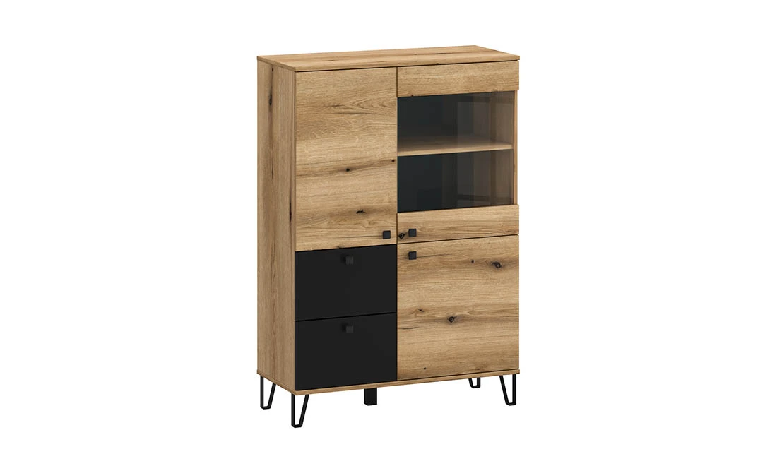 Вітрина низька 2д1в2ш Вейл дуб евок/чорний