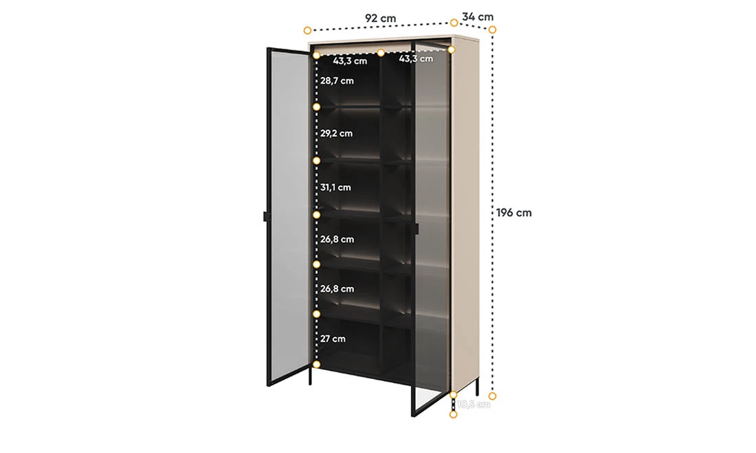 Вітрина висока 2-дв Тренд бежевий/чорний з підсвіткою