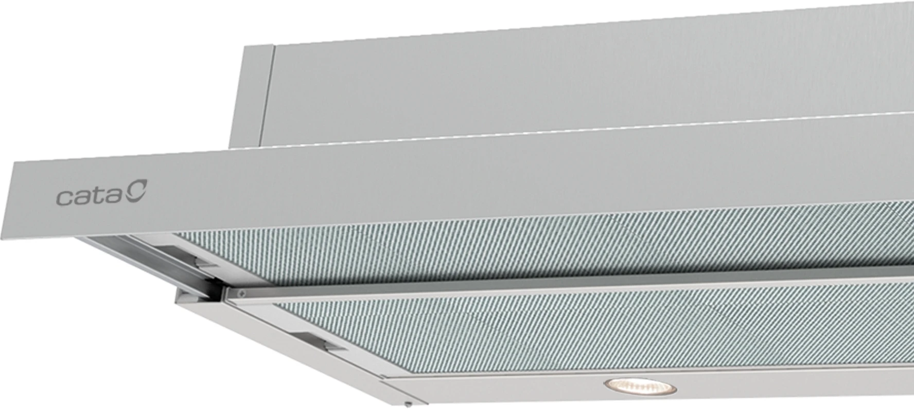 Cata TF-2003 Duralum 900 (02094305) — класична телескопічна витяжка шириною 90 см з нержавіючої сталі, продуктивністю до 390 м³/год (реальна максимальна ~600 м³/год у турборежимі). 2 рівні потужності, механічне керування гойдалкою, яскраве LED-освітлення 2×3.5 Вт та алюмінієві фільтри, що миються. Тиха в повсякденному режимі (45–57 дБ), клас С, ідеальна для кухонь середнього та великого розміру з електричними та газовими плитами.