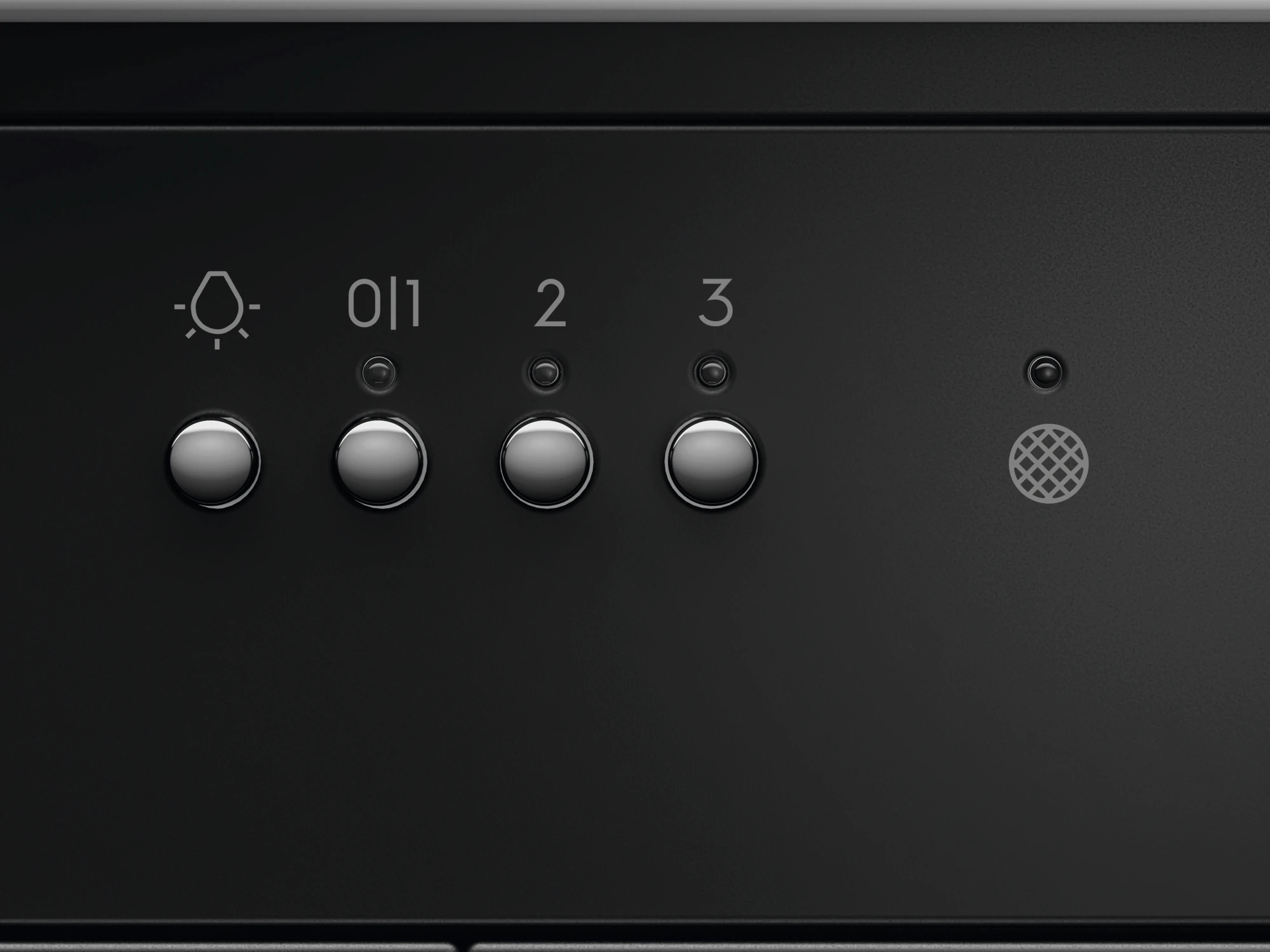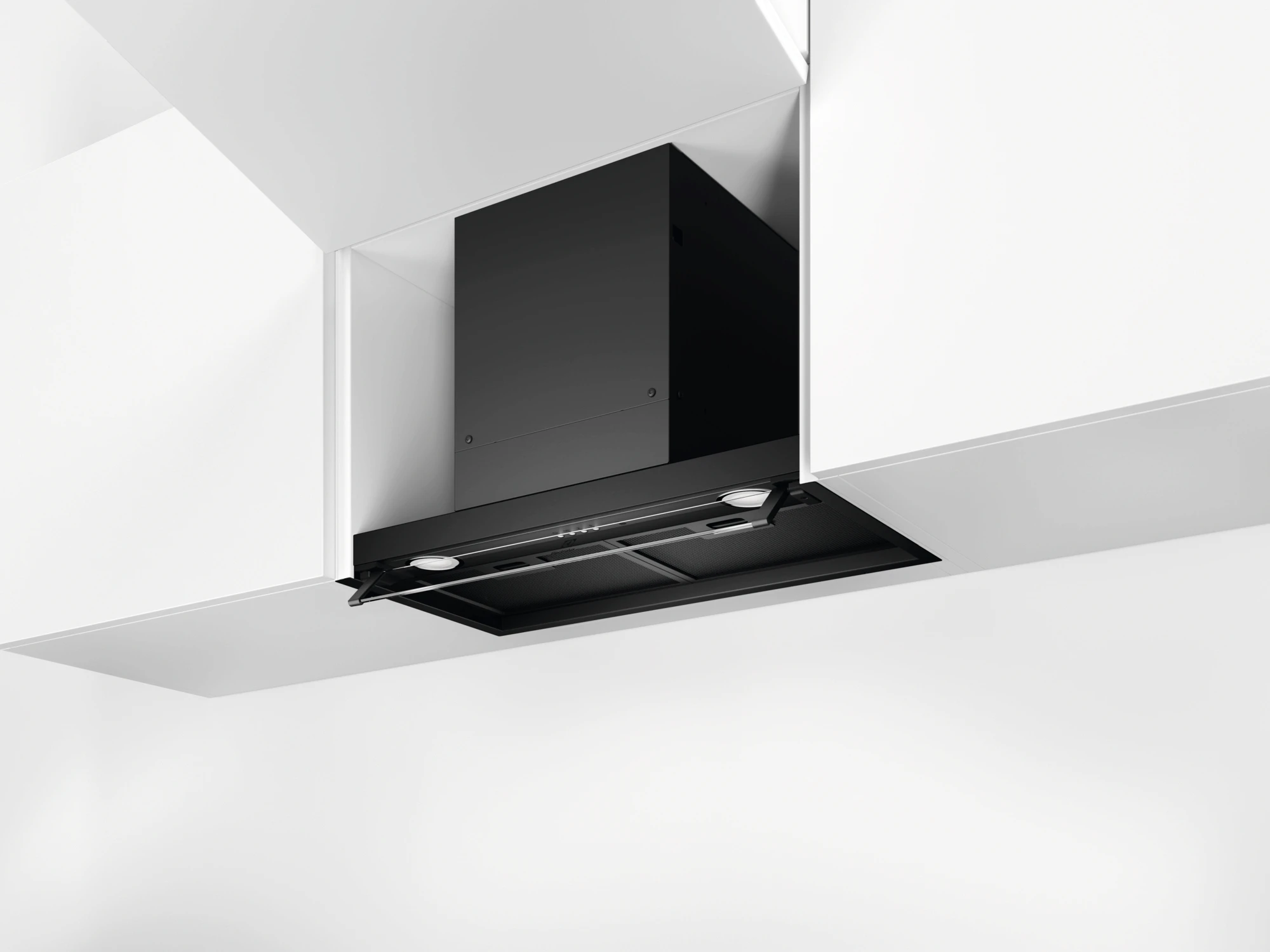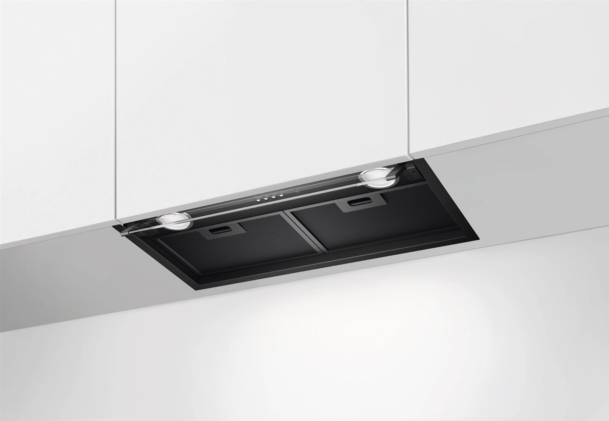 Electrolux LFP516K — стильна повністю вбудована витяжка шириною 60 см у глибокому чорному кольорі з продуктивністю до 600 м³/год (інтенсивний режим). Оснащена електронними кнопками, LED-підсвіткою 2×3 Вт, індикаторами забруднення жирового та вугільного фільтрів, а також працює як у режимі відведення, так і рециркуляції (вугільний фільтр окремо). Тиха на повсякденних швидкостях (55–66 дБ), ідеально підходить для сучасних кухонь з острівними або вбудованими шафами, де потрібна максимальна непомітність і ефективність.