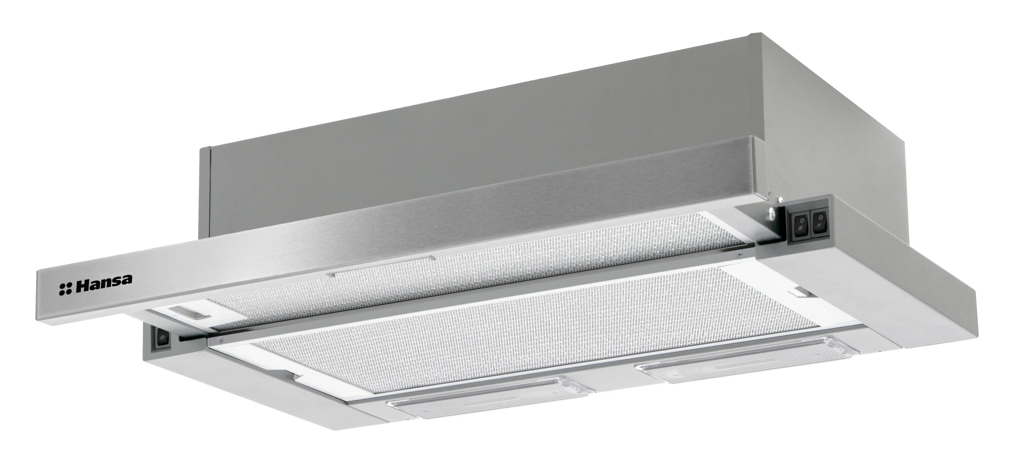 Телескопічна витяжка Hansa OTS6251IH шириною 60 см висувається під час роботи і повністю ховається в шафу після завершення. Максимальна продуктивність 429 м³/год швидко видаляє пари та запахи навіть при інтенсивному приготуванні. Дві світлодіодні лампи E14 створюють тепле освітлення 2700 К робочої поверхні. Кульковий перемикач на одній стороні панелі дозволяє легко обирати одну з трьох швидкостей, а автоматичний запуск активує пристрій разом із плитою.