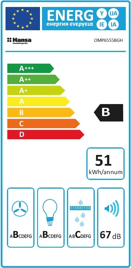 Вбудована витяжка Hansa OMP6553/55BGH шириною 55 см з продуктивністю до 500 м³/год. Чорний корпус і сенсорне управління з жестами забезпечують сучасний стиль і легкість використання. Три швидкості вентилятора, LED-підсвітка, таймер та антизворотний клапан створюють комфортну кухонну атмосферу.