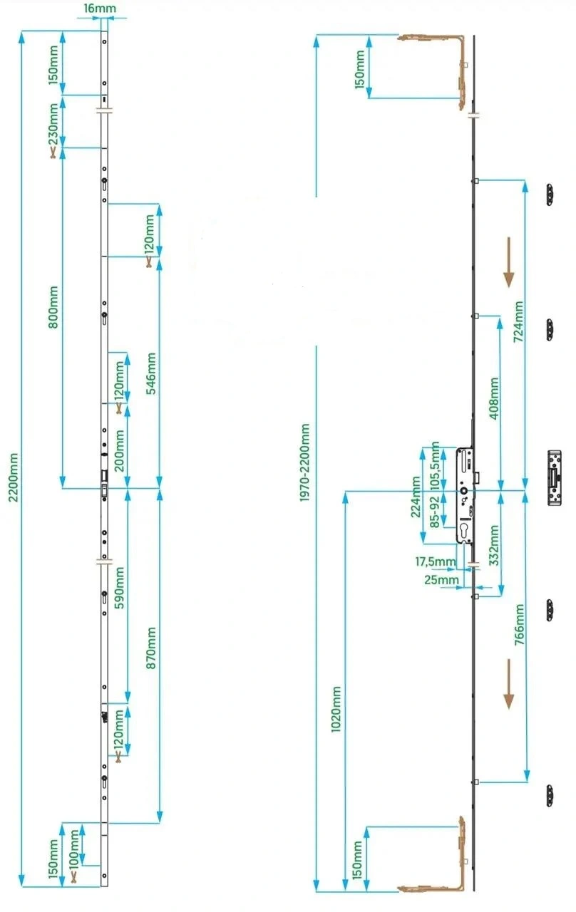 Замок-рейка VORNE V.6413.1602 180см 85\25 без ригеля Хром