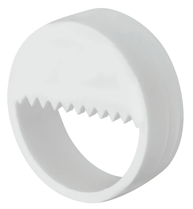 Підвіс для врізання, з зубчатою опорою виготовлений з пластмаси білого кольору. Розміри підвісу: зовнішній діаметр/внутрішній діаметр/глибина/товщина - 30/27/11/2,5 мм.