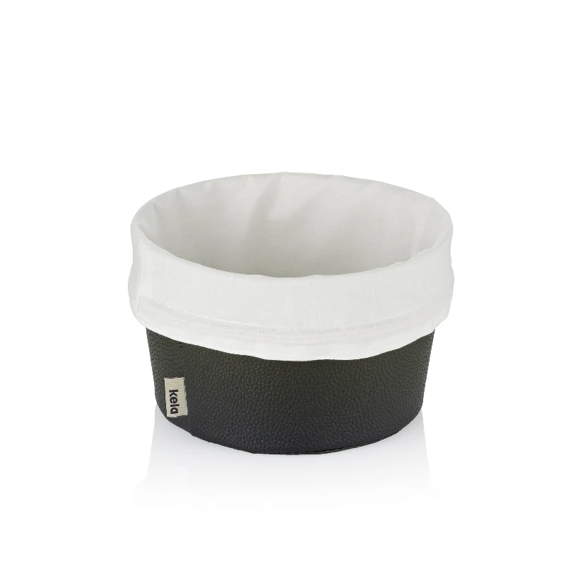 Кошик KELA Grana для хліба та булочок виготовлена зі штучної шкіри з бавовняним мішечком усередині. Цей мішок можна прати при 30°C, і його можна затягнути шнурком. Мішечок також захищає випічку від висихання.
