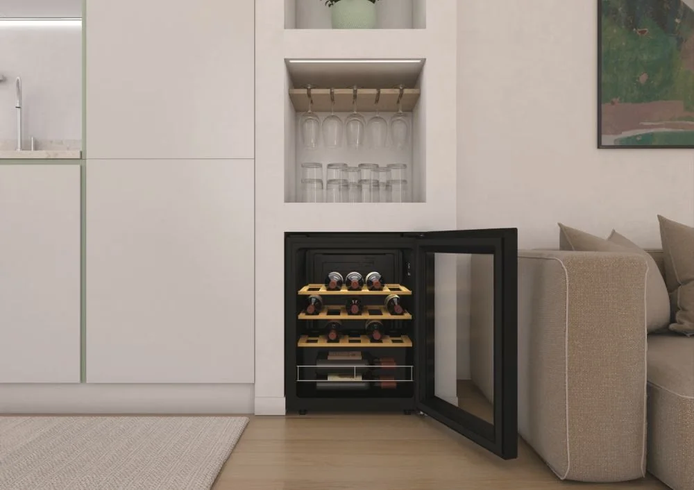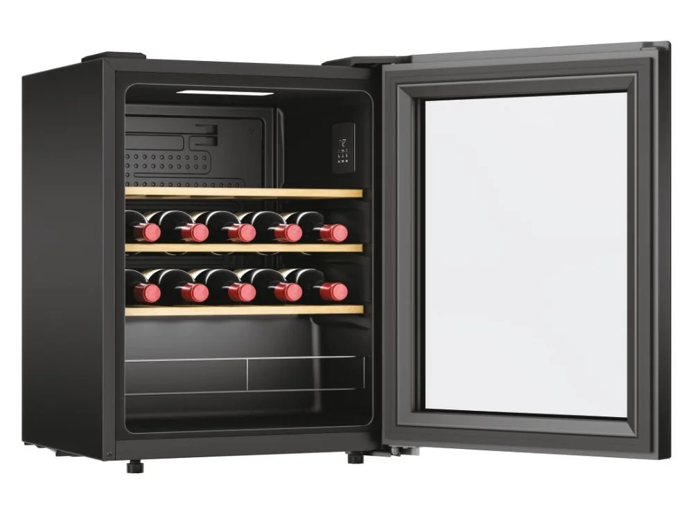 Candy CWC023 — это компактный винный холодильник, рассчитанный на 23 бутылки, с одной температурной зоной и электронным управлением. Идеально подходит для хранения одного типа вина (белого или красного) в домашних условиях. Современный чёрный корпус и стеклянная дверца с УФ-защитой придают устройству элегантный вид.