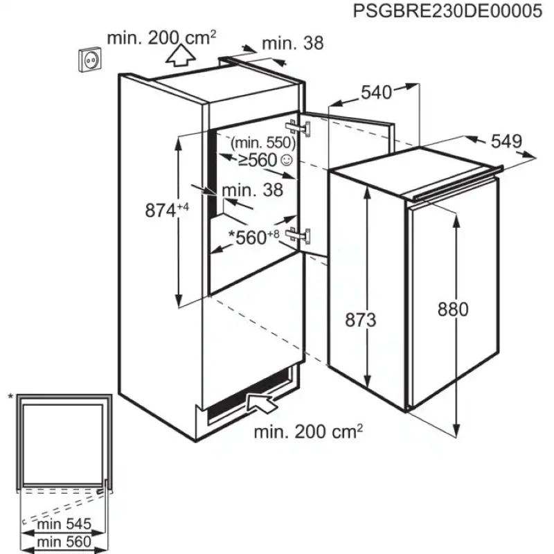 Холодильник Electrolux вбудований з верхн. мороз., 87.3x55х55, холод.відд.-109л, мороз.відд.-14л, 1д