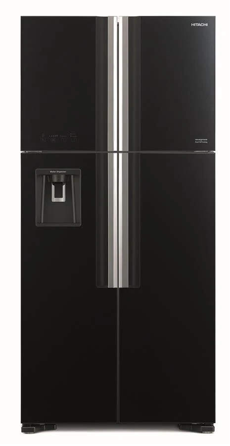 Холодильник Hitachi R-W660PUC7-1GBK – багатодверна модель з верхнім розташуванням морозильної камери та загальним корисним об’ємом 540 л (396 л холодильне відділення + 144 л морозильне). Інверторний компресор разом з системою No Frost в усіх камерах забезпечує стабільну температуру без утворення інею. Зона нульової температури подовжує свіжість м’яса, риби та овочів. Вбудований диспенсер видає холодну воду та лід без відкриття дверей. Чорний скляний фасад додає сучасного вигляду та стійкості до відбитків.