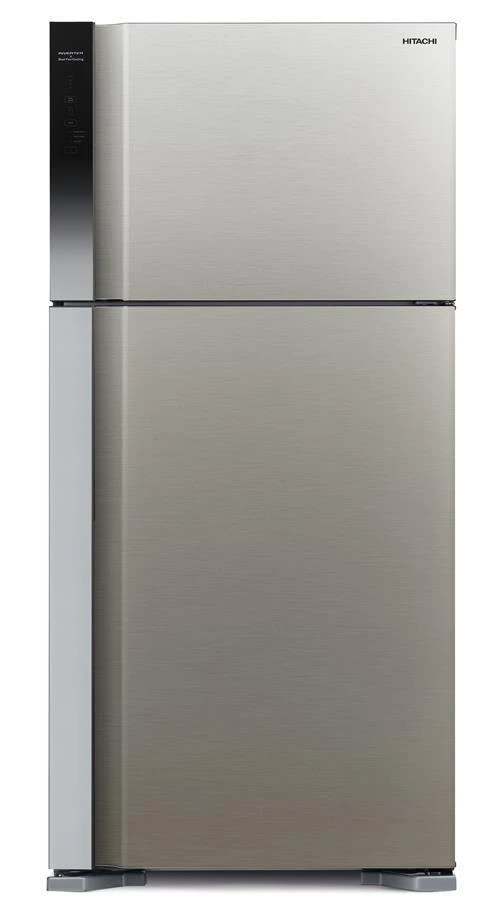 Холодильник Hitachi R-V660PUC7-2BSL з верхнім розташуванням морозильної камери має загальний корисний об’єм 550 л (405 л холодильне відділення + 145 л морозильне). Інверторний компресор та система No Frost в обох камерах підтримують стабільну температуру без утворення інею. Два незалежні вентилятори Dual Fan та два термодатчики Eco Thermo-Sensor забезпечують точне охолодження в кожному відділенні. Зона нульової температури подовжує свіжість м’яса, риби та овочів. Фасад з полірованої нержавіючої сталі додає стійкості та сучасного вигляду.