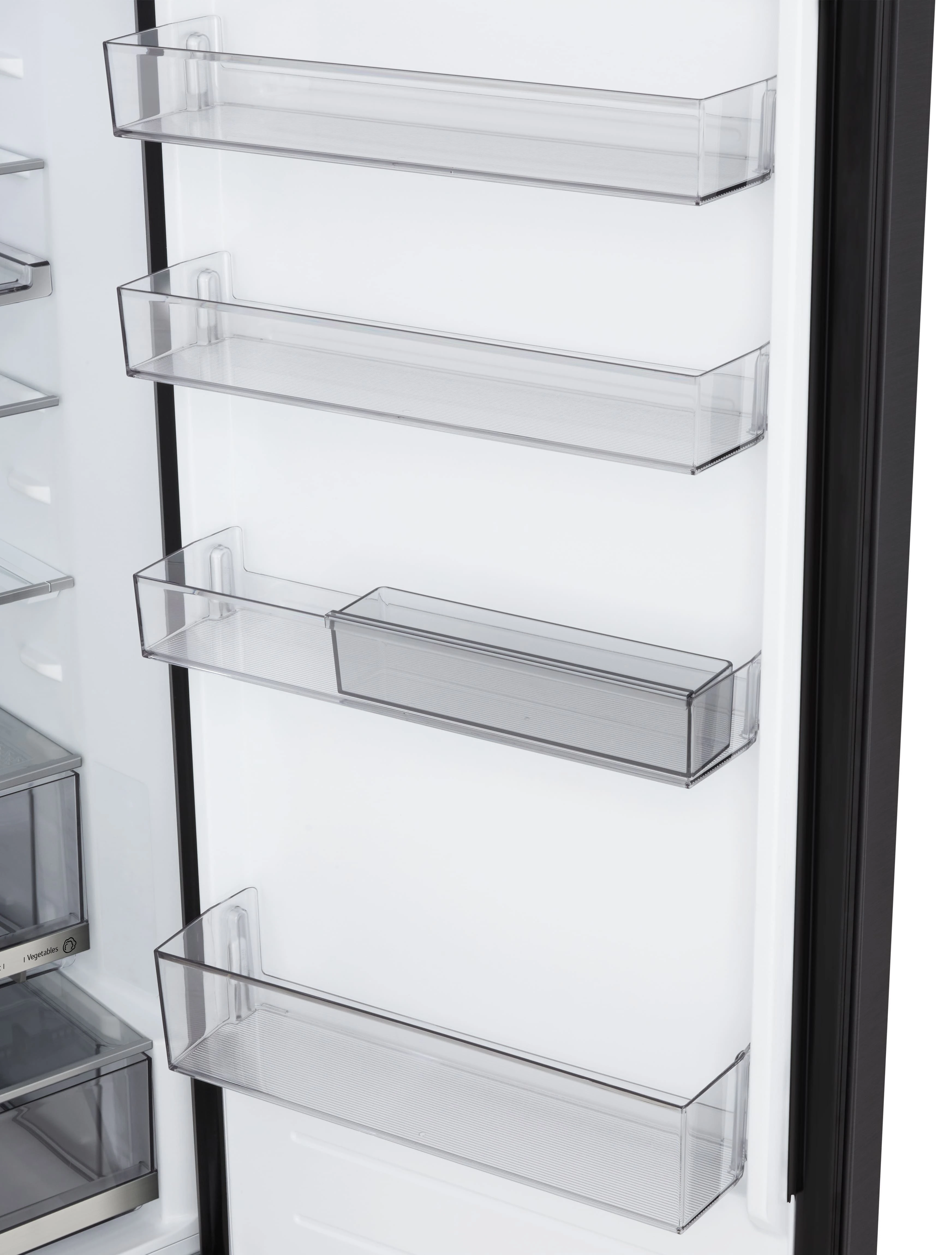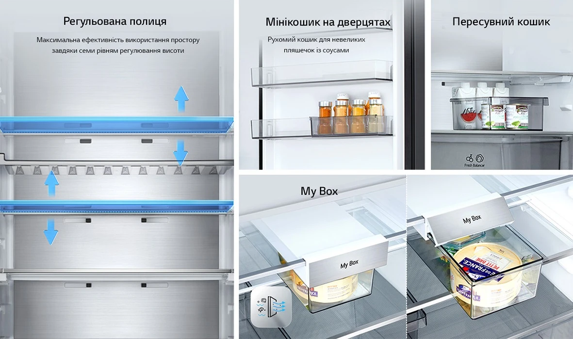 - Дополнительно Перевішування дверей; металеве декорування полиць та ящиків; нульовий зазор; лоток для заморожування